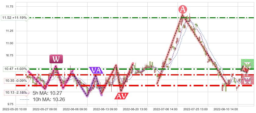 ♘ 阻力价格位10.47,可信任强度79.03%,距离最后交易2022-08-12 14:00形成的收盘价格10.36相差 +1.03%