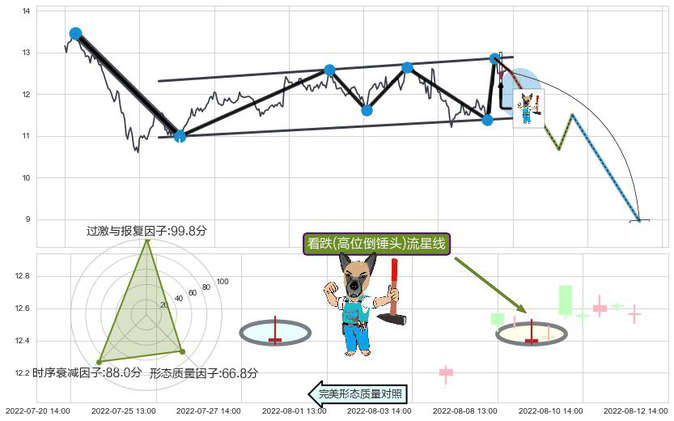 ➢ 🕰 价格走势在2022-08-09 13:00:00至2022-08-09 13:00:00期间形成看跌(高位倒锤头)流星线,残存影响值:-7.94