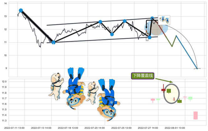 ➢ 🕰 价格走势在2022-07-28 13:00:00至2022-07-29 14:00:00期间形成下降覆盖线,残存影响值:-2.62
