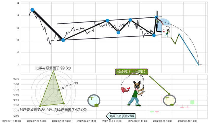 ➢ 🕰 价格走势在2022-08-05 14:00:00至2022-08-08 13:00:00期间形成吊颈线(上吊线),残存影响值:-7.21
