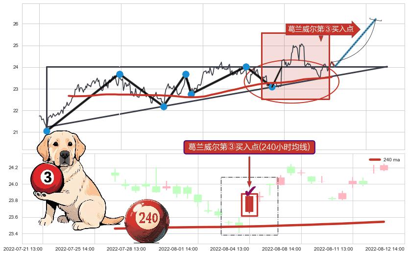 从2022-08-03 14:00至2022-08-12 14:00,共包含15个小时,阶段股价上涨3.21%,阶段股价变动位移路程比: 1 : 1.9