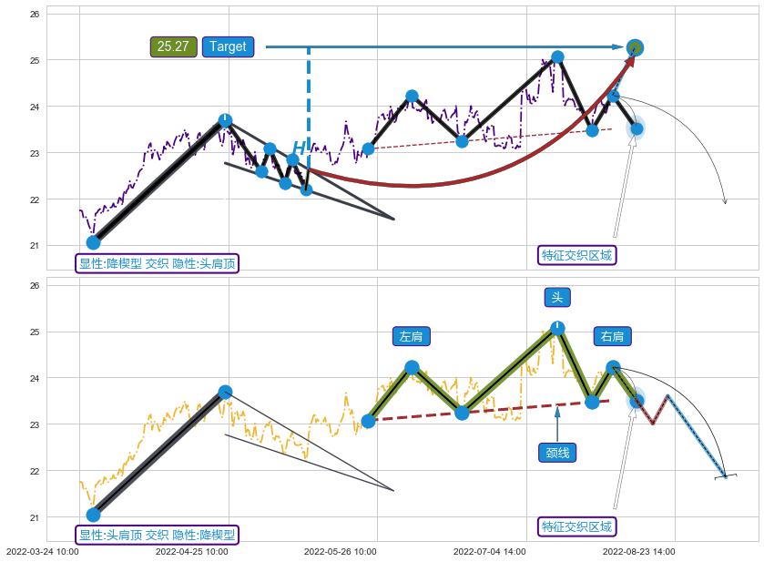 从2022-04-22 14:00至2022-04-29 13:00,共包含25个小时,阶段股价下跌-4.63%,阶段股价变动位移路程比: 1 : 3