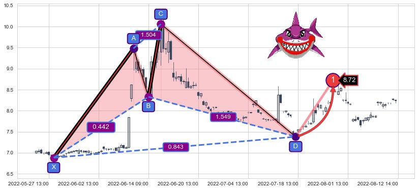 ➣ 已完成【鲨鱼】形态起点X: 05-30:09, 终点D: 07-15:14, 共98交易小时