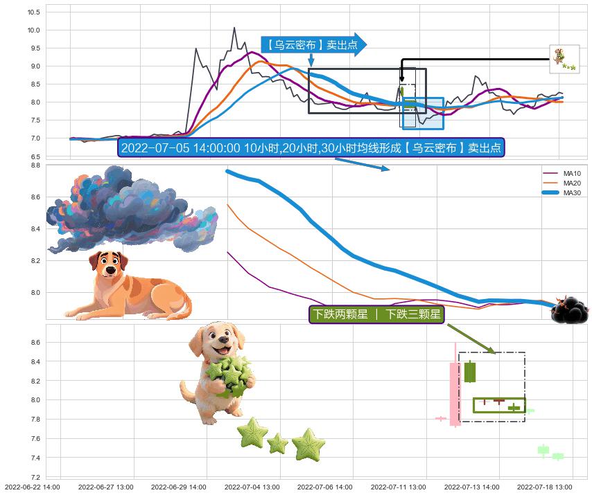 从2022-06-30 13:00至2022-07-12 13:00,共包含17个小时,阶段股价上涨7.67%,阶段股价变动位移路程比: 1 : 2