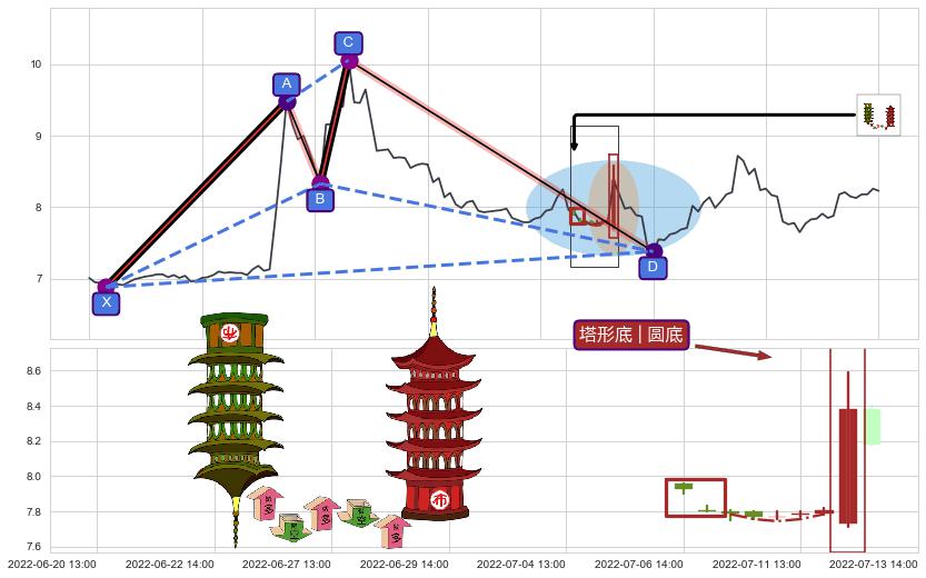 ➣ D点拟合预测价格5.49,距离最后交易收盘价格8.23相差 -33.29%