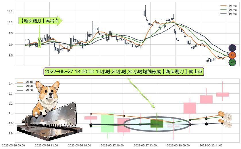 ⚀ 2022-05-27 13:00:00小时显现 10小时-20小时-30小时均线 【断头铡刀】卖出点 看空信号,后市看跌,卖出