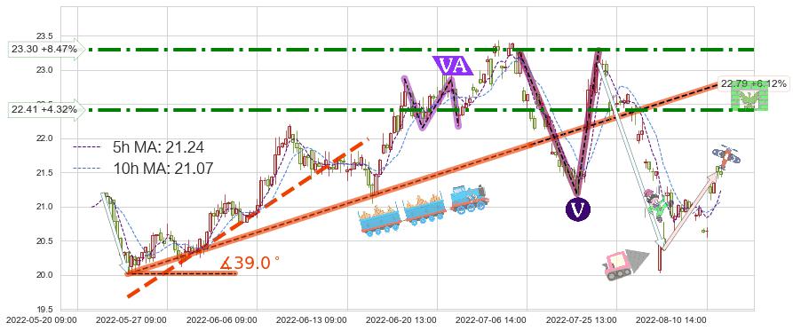 ♘ 阻力价格位22.41,可信任强度75.37%,距离最后交易2022-08-12 14:00形成的收盘价格21.48相差 +4.32%