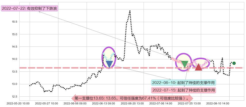 ♘ 支撑价格位13.65,可信任强度67.41%,距离最后交易2022-08-12 14:00形成的收盘价格13.84相差 -1.35%