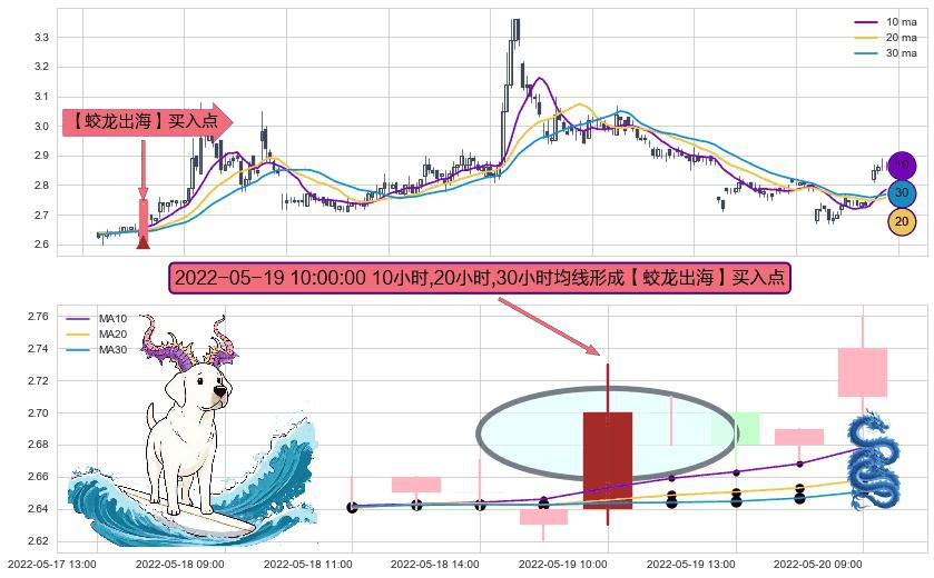形态多维评估: ⚀ 2022-05-19 10:00:00小时显现 10小时-20小时-30小时均线 【蛟龙出海】买入点 看多信号,后市看涨,买入