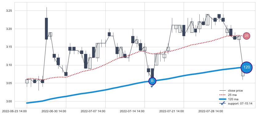 ⚂ 2022-05-25 14:00:00小时突然冒出一根大阳线,一下子顶穿三条均线且收盘价收在各条均线之上