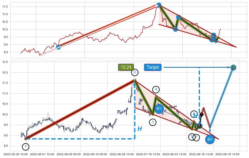 ➢ 最小中继整理涨幅→𝐇: 2.790 (𝐇楔型旗杆的长度:楔型起点→顶点)