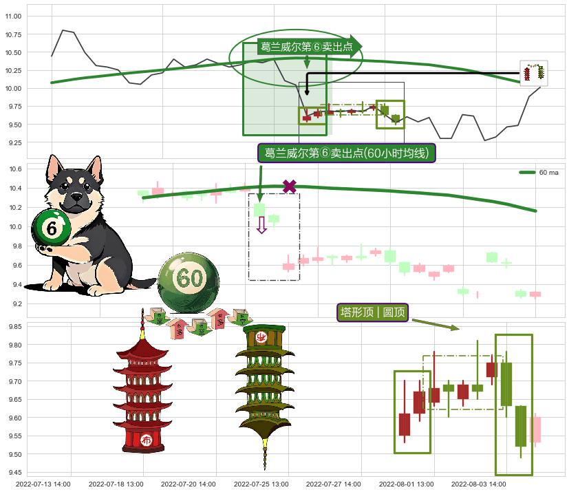 | 6 🅚:塔形顶 | 圆顶 ➕ 🎢:【毒蜘蛛】卖出点均线组合卖出点信号形成后,猜想三条均线周期内的交易者都看空后市,持续下跌 ☞ 看空信号 ⇥ 【均线】交织【🅚线】⇥ 综合量化分数: 44 | > |