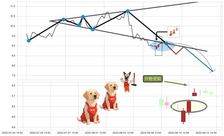 ♘ 阻力价格位9.77,可信任强度47.51%,距离最后交易2022-08-12 14:00形成的收盘价格9.12相差 +7.16%