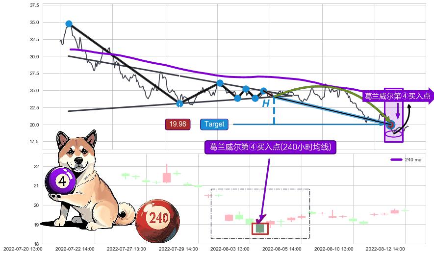 从2022-06-20 13:00至2022-08-12 14:00,共包含80个小时,阶段股价下跌-26.39%,阶段股价变动位移路程比: 1 : 3