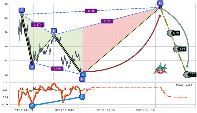 ➣ 未完成【鲨鱼】形态起点X: 04-13:09, 已到达C点: 08-10:13, 预测最终D点: 10-27:15, 共680交易小时