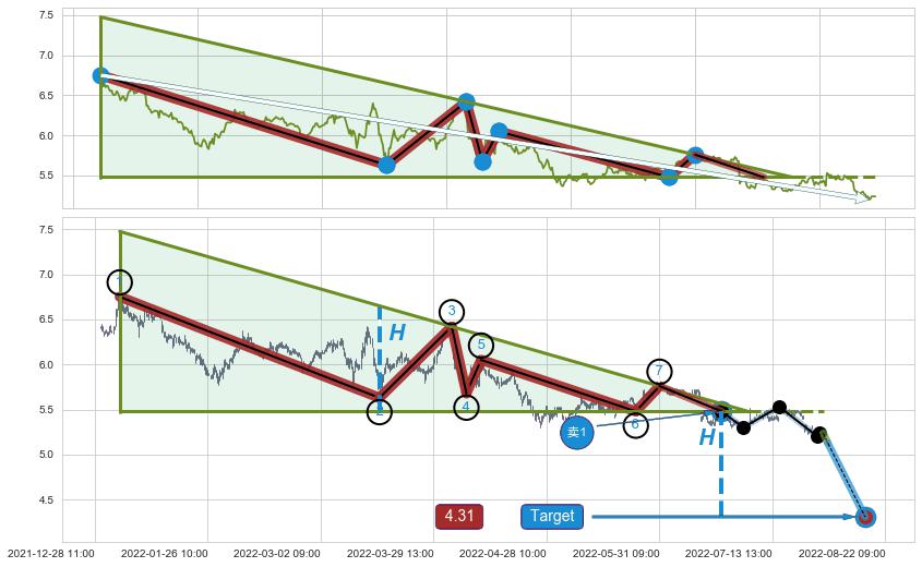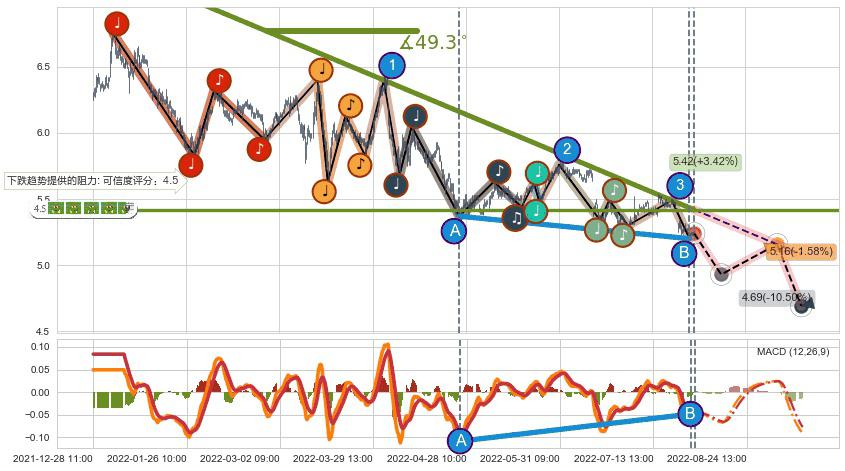 ➣ 预测:2022-08-31 12:00,【试探阻力】稳定目前下跌趋势的前提下,预测价格:5.16