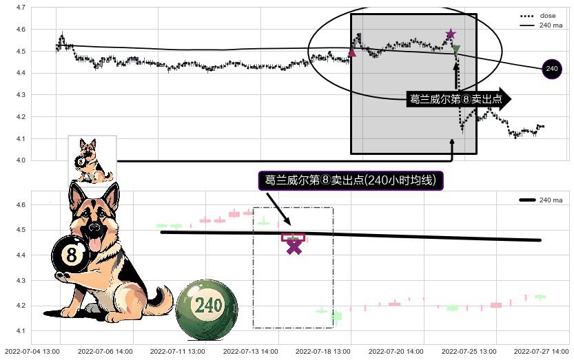 ⚁ 240小时均线 第⑧卖出点 属于 均线服从 信号,属于趋势运行的【常态】即信号期望为下降趋势的中继