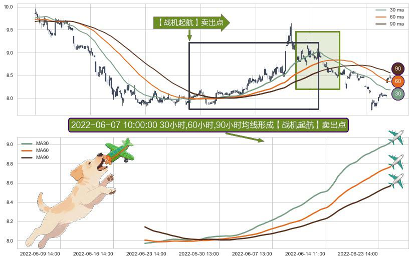 ⚀ 2022-05-19 14:00:00小时-2022-06-28 14:00:00小时显现 30小时-60小时-90小时均线 【战机起航】卖出点 看空信号,后市看跌,卖出