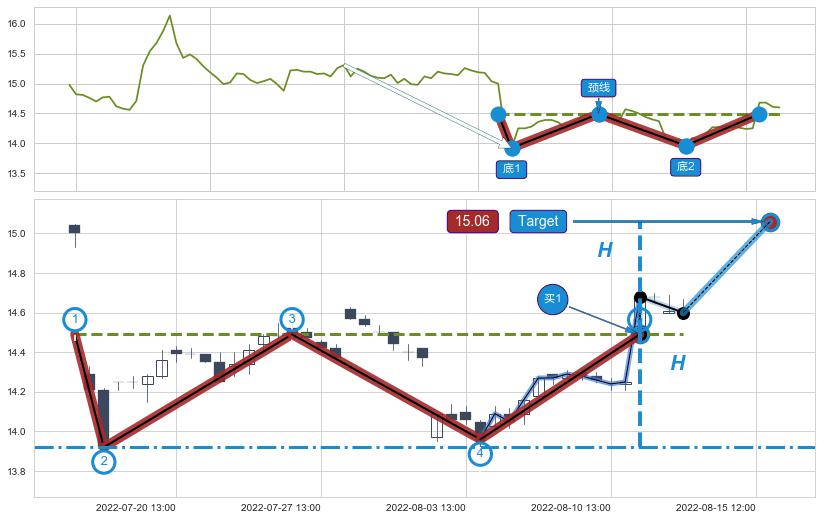 ➢ 【买1】: 激进型 买点 →(08-11:13: 14.49 )形成突破双重底【反转】形态