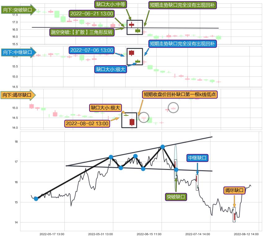 ➢ 2022-08-02 13:00形成:向下跳空【竭尽】缺口