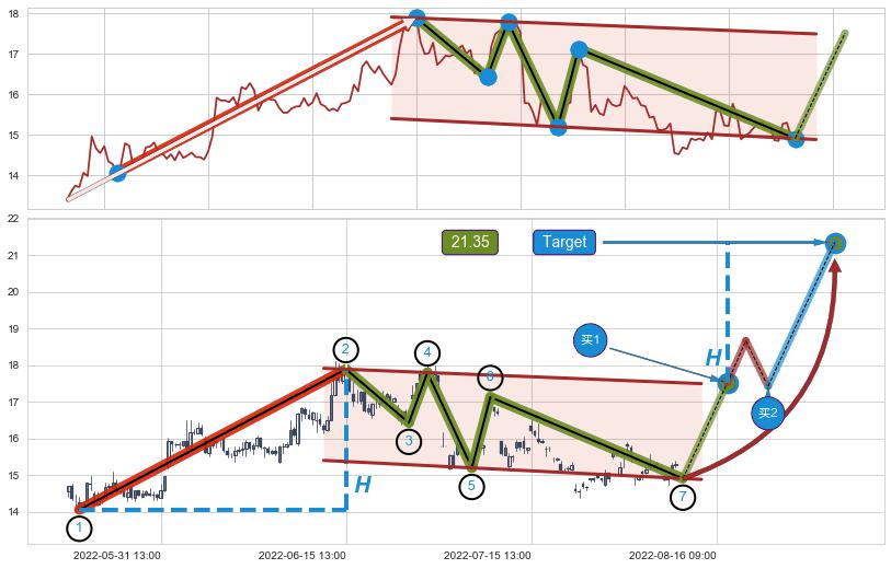 ➣ 最小中继整理涨幅→𝐇: 3.830 (𝐇旗杆的长度:旗杆起点→顶点)