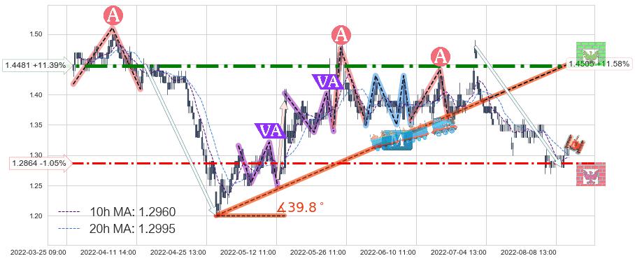 ♘ 阻力价格位1.4481,可信任强度92.05%,距离最后交易2022-08-12 14:00形成的收盘价格1.3000相差 +11.39%