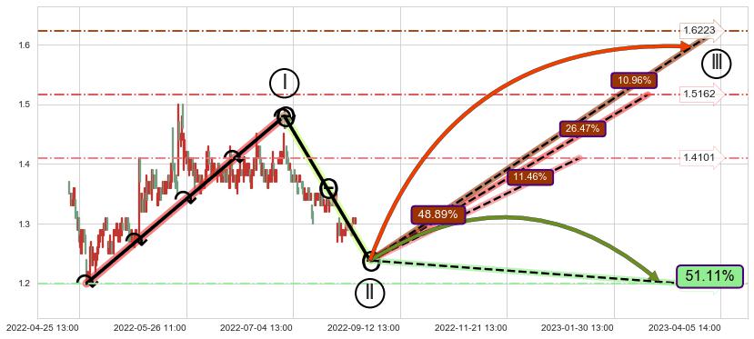 ➢ 循环浪继续向上【最低】位置(01-06:13, 1.4101),匹配聚类样本比例23.44%, 可能性概率11.46%