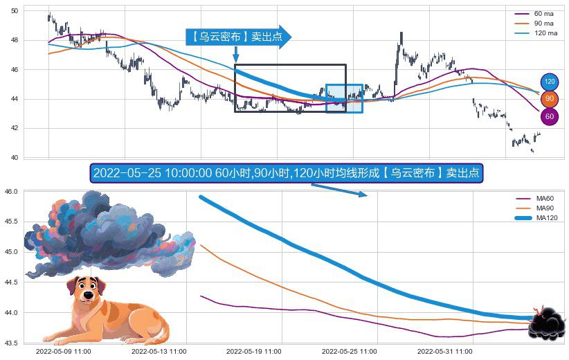 ⚀ 2022-05-16 09:00:00小时-2022-06-06 10:00:00小时显现 60小时-90小时-120小时均线 【乌云密布】卖出点 看空信号,后市看跌,卖出