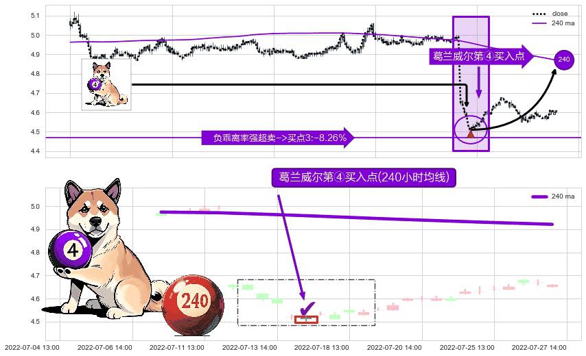 ⚀ 2022-07-14 14:00:00-小时显现 葛兰威尔均线 240小时均线 第④买入点 下降趋势均值回复的短线反弹信号,后市看涨,买进信号