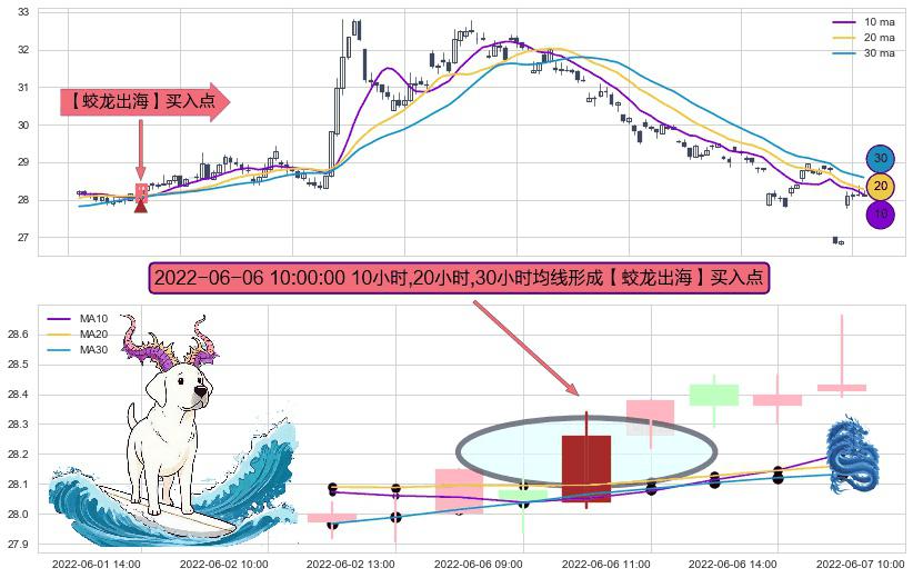 形态多维评估: ⚀ 2022-06-06 10:00:00小时显现 10小时-20小时-30小时均线 【蛟龙出海】买入点 看多信号,后市看涨,买入