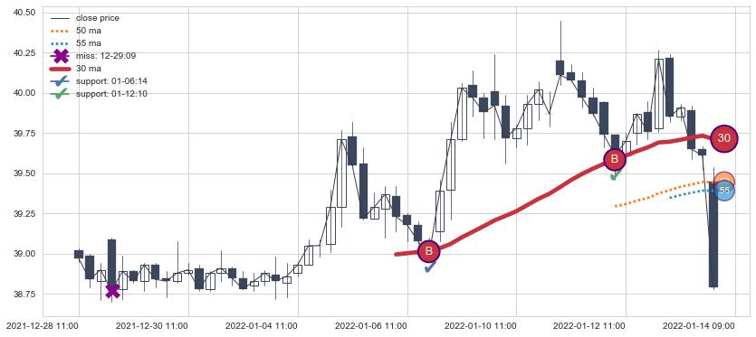 下跌趋势04-19 14:00-05-20 14:00,均线50, 30, 55确认关键阻力2处