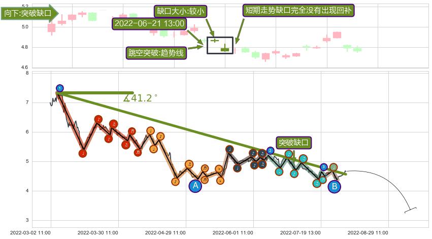➢ 2022-06-21 13:00形成:向下跳空【突破】缺口