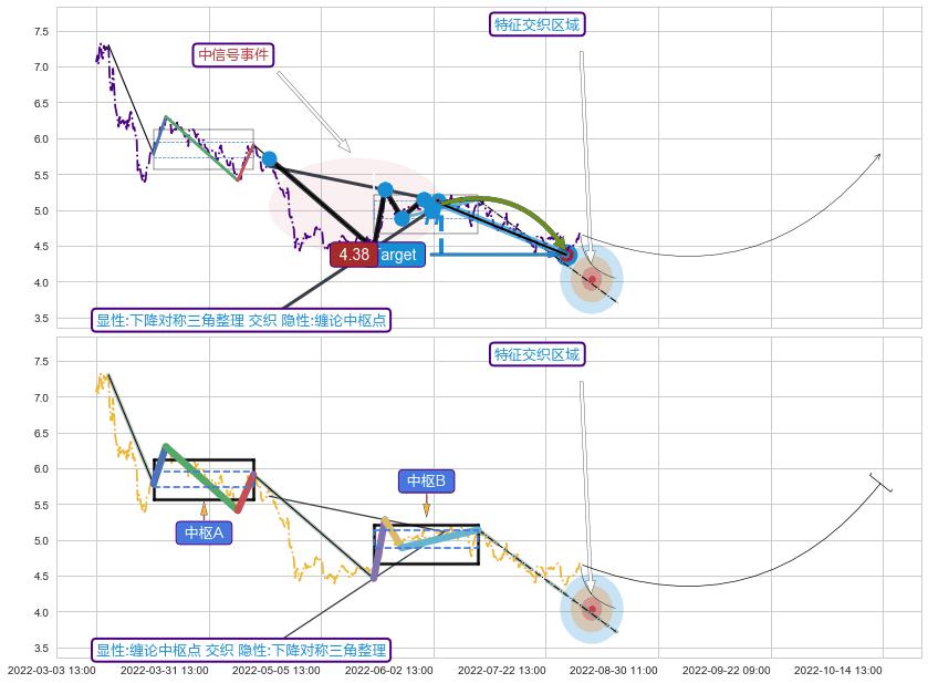 🦴 长线均值回复组合短线趋势跟踪[强阻力信号]2022-03-04 11:00-2022-08-12 14:00下跌趋势依然成立(下跌趋势跟踪依然存在),短线价格略微上行反弹(均值回复猜想),即将接近下跌趋势提供的未破位阻力价格:4.56。