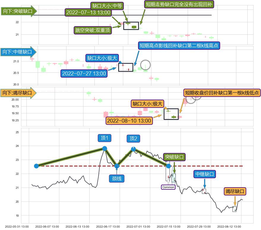 ➢ 2022-08-10 13:00形成:向下跳空【竭尽】缺口