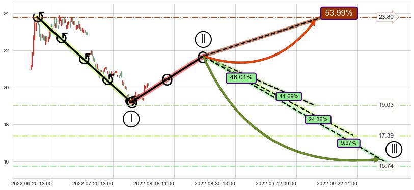 ➢ 循环浪继续向下【最低】位置(09-29:10, 15.74),匹配聚类样本比例21.66%, 可能性概率9.97%