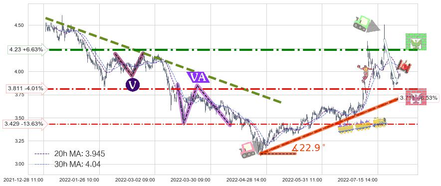♞ 20小时均线:3.945,30小时均线:4.04→ 快线<慢线