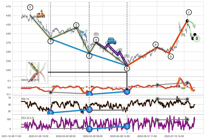 ➢ a,c调整浪MACD, RSI, KDJ走势都【未出现】背离,abc走势延续, 5浪反转概率增强