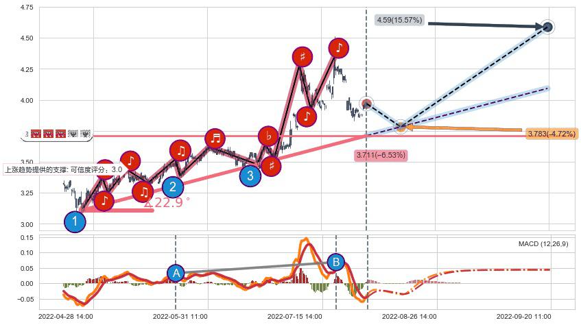 ➣ 预测:2022-09-20 11:00,【继续上扬】稳定目前上涨趋势的前提下,预测价格:4.59