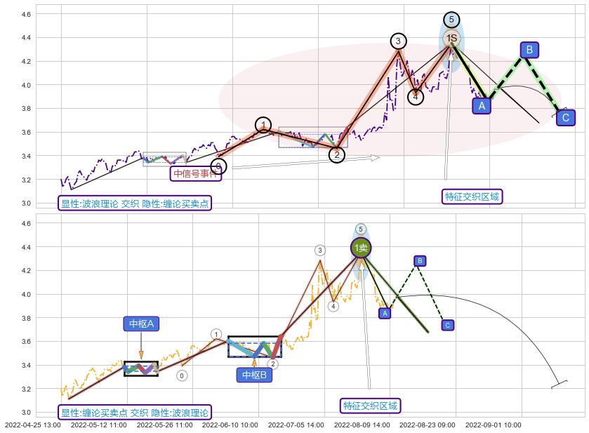 从2022-07-11 13:00至2022-07-15 14:00,共包含10个小时,阶段股价上涨0.14%,阶段股价变动位移路程比: 1 : 88