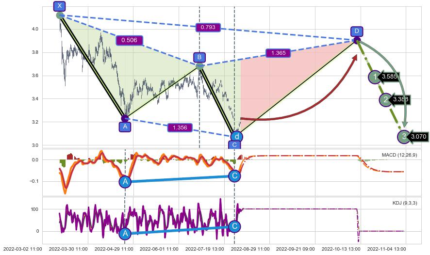 ➣ D点拟合预测价格3.903,距离最后交易收盘价格3.230相差 +20.83%