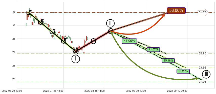 ♘ 支撑价格位24.93,可信任强度99.12%,距离最后交易2022-08-12 14:00形成的收盘价格27.91相差 -10.68%
