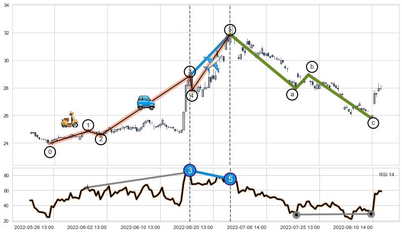 ➣ a,c调整浪RSI走势未出现明显背离