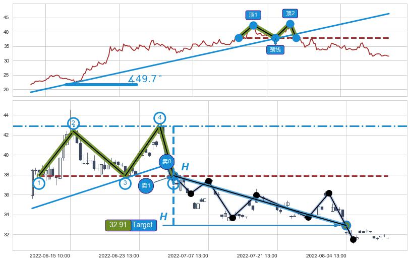➣ 收盘价(08-08:14: 32.33 )→回踩→第一根k线低点(08-04:14: 32.08 )