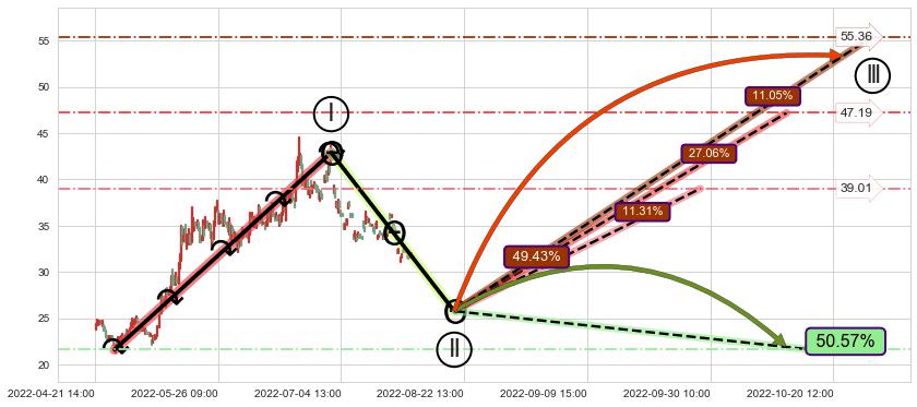 ➢ 大趋势走坏(跌破5浪起点位置)概率50.57%