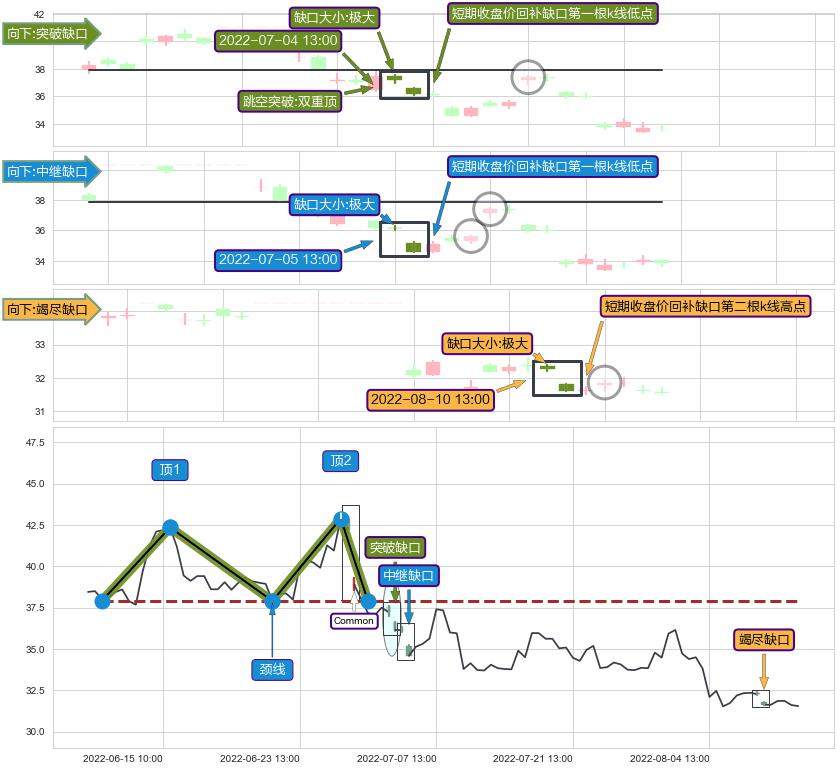 ➢ 2022-08-10 13:00形成:向下跳空【竭尽】缺口