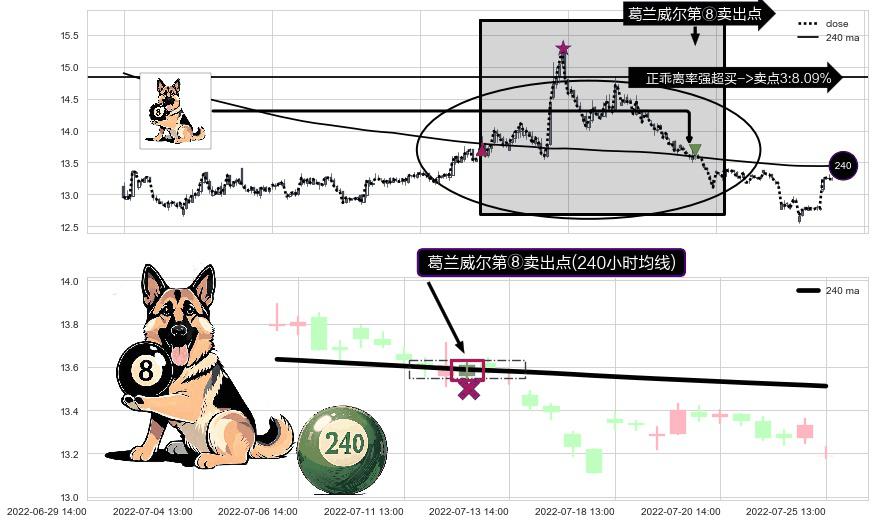 形态多维评估: ⚀ 2022-07-12 14:00:00-小时显现 葛兰威尔均线 240小时均线 第⑧卖出点 下降趋势的中继信号,后市看跌,卖出信号