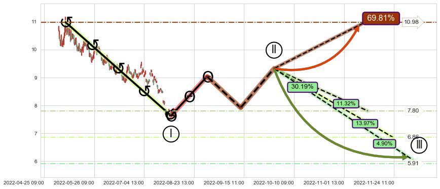 2022-06-17: 第一阻力位9.02有效抑制了下跌浪,成功阻止了价格的继续下跌。