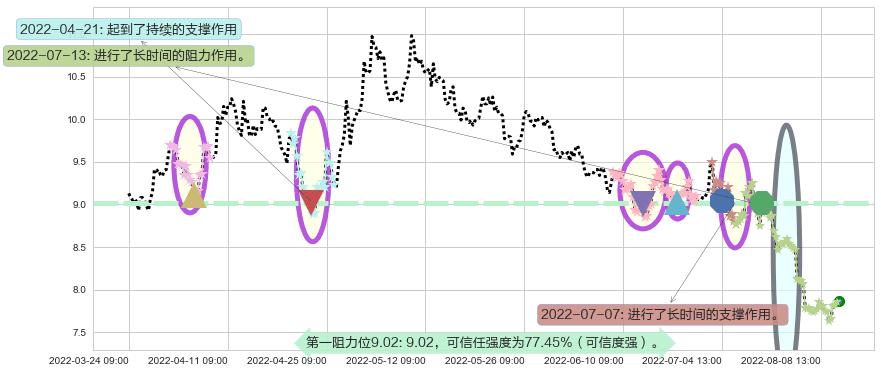 ♘ 阻力价格位9.02,可信任强度77.45%,距离最后交易2022-08-12 14:00形成的收盘价格7.87相差 +14.62%
