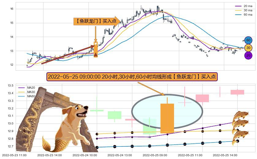 ⚀ 2022-05-25 09:00:00小时显现 20小时-30小时-60小时均线 【鱼跃龙门】买入点 看多信号,后市看涨,买入