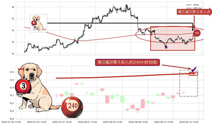 ⚀ 2022-08-12 14:00:00-小时显现 葛兰威尔均线 240小时均线 第③买入点 上升趋势的中继信号,后市看涨,买进信号
